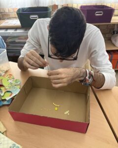 Detrás de cada detallito de las comuniones de los niños de tercero hay horas de ilusión, concentración y muchísimo corazón. Los niños de educación especial están poniendo todo su empeño para que cada creación sea única y especial.