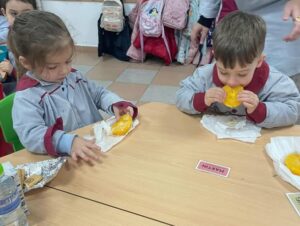 En la primera entrega, nuestro alumnado ha tenido la oportunidad de degustar deliciosas naranjas, una experiencia que les permitió descubrir nuevos sabores y texturas. Esta actividad no solo busca promover el consumo de frutas frescas, sino también educar sobre la importancia de una alimentación equilibrada y saludable para su crecimiento y desarrollo.